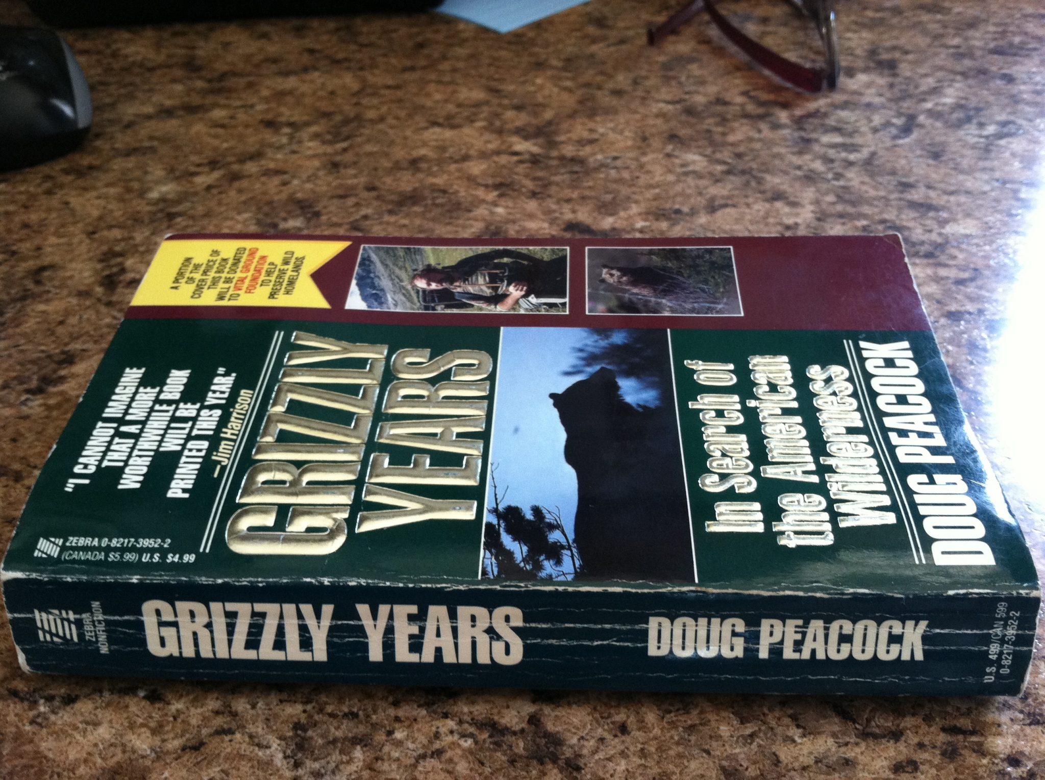 Peacock, Doug. Grizzly Years: In Search of The American Wilderness. Zebra Books, New York, 1992, 375 pages. Mass Market Paperback. Inscribed by the author on the back of the first page “To Bruce & Jamie, From their pal Doug in Aspen Co 3/93 For The Wild Ones”.